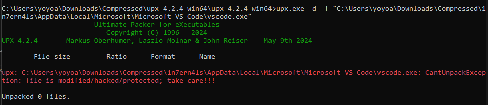 doing basic analysis on that exe, it’s packed using upx