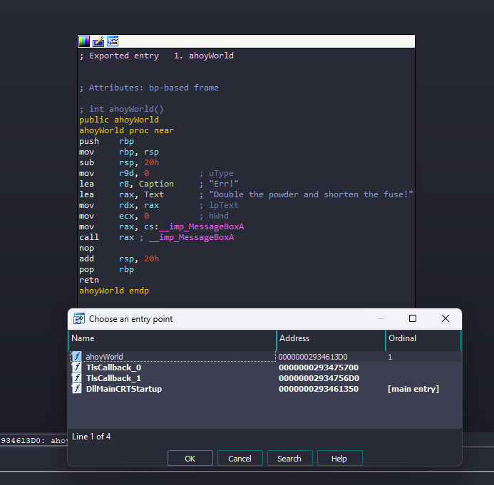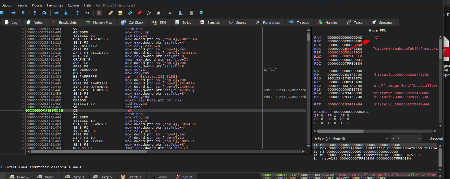 and we can confirm that easily by debugging the DLL in x64dbg and setting the RIP on the first part directly and step until return