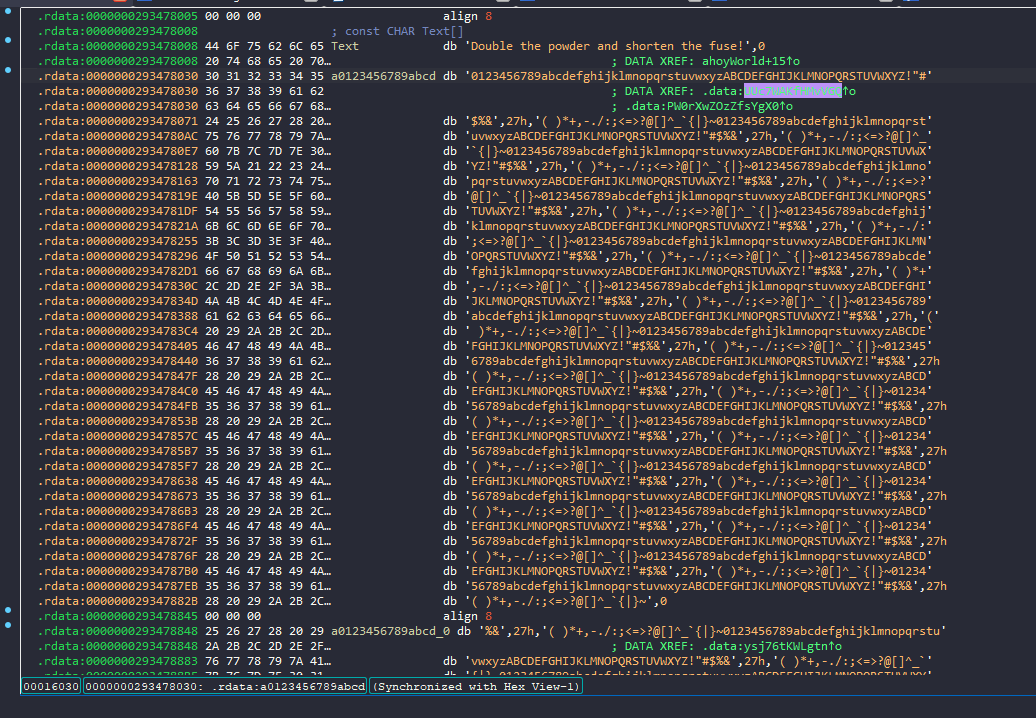 If we continue stepping through the code, skipping the return instructions, we’ll notice that these characters eventually form meaningful words.