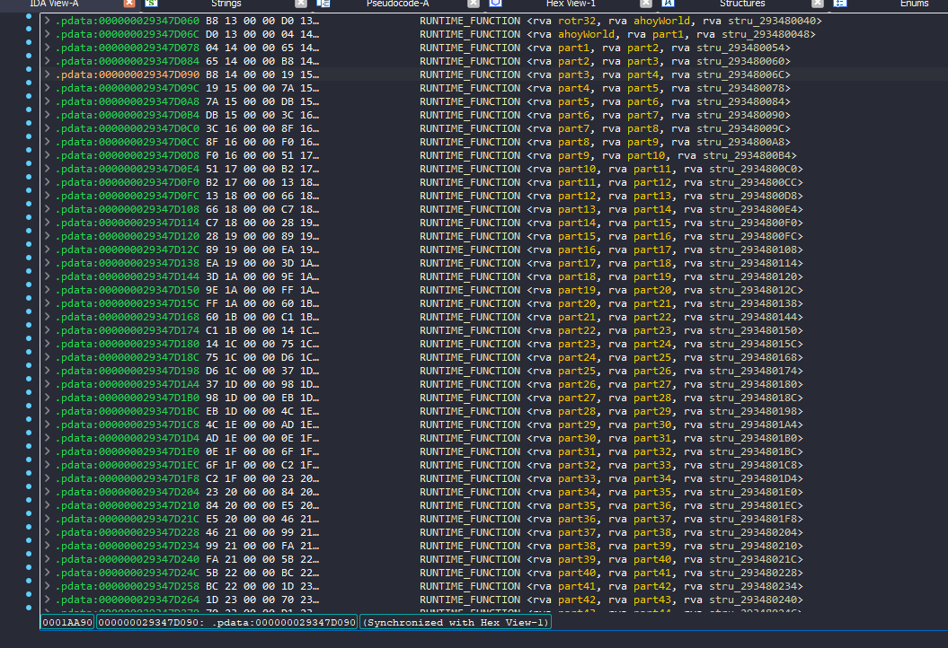 Taking a look on XREFS, I ended up in pdata section with a lot of runtime function