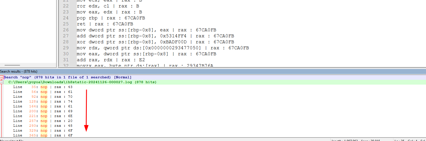 after it finished tracing, and we got our log file, I’ll filter only line with nop instruction