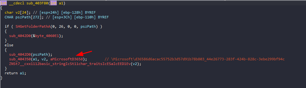 If we dig deeper and take a look at sub_403F80, we will find that it sets a file path for some purpose, and then in sub_404020, it will save the generated encryption key to that file.