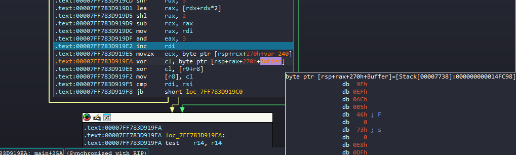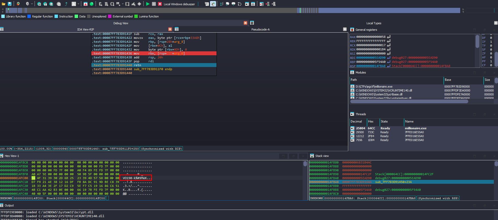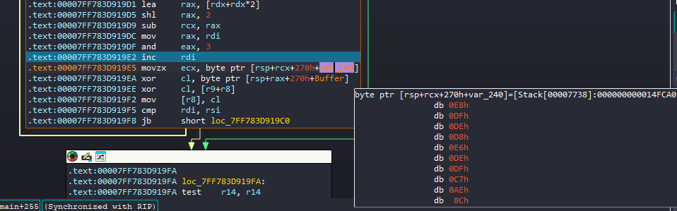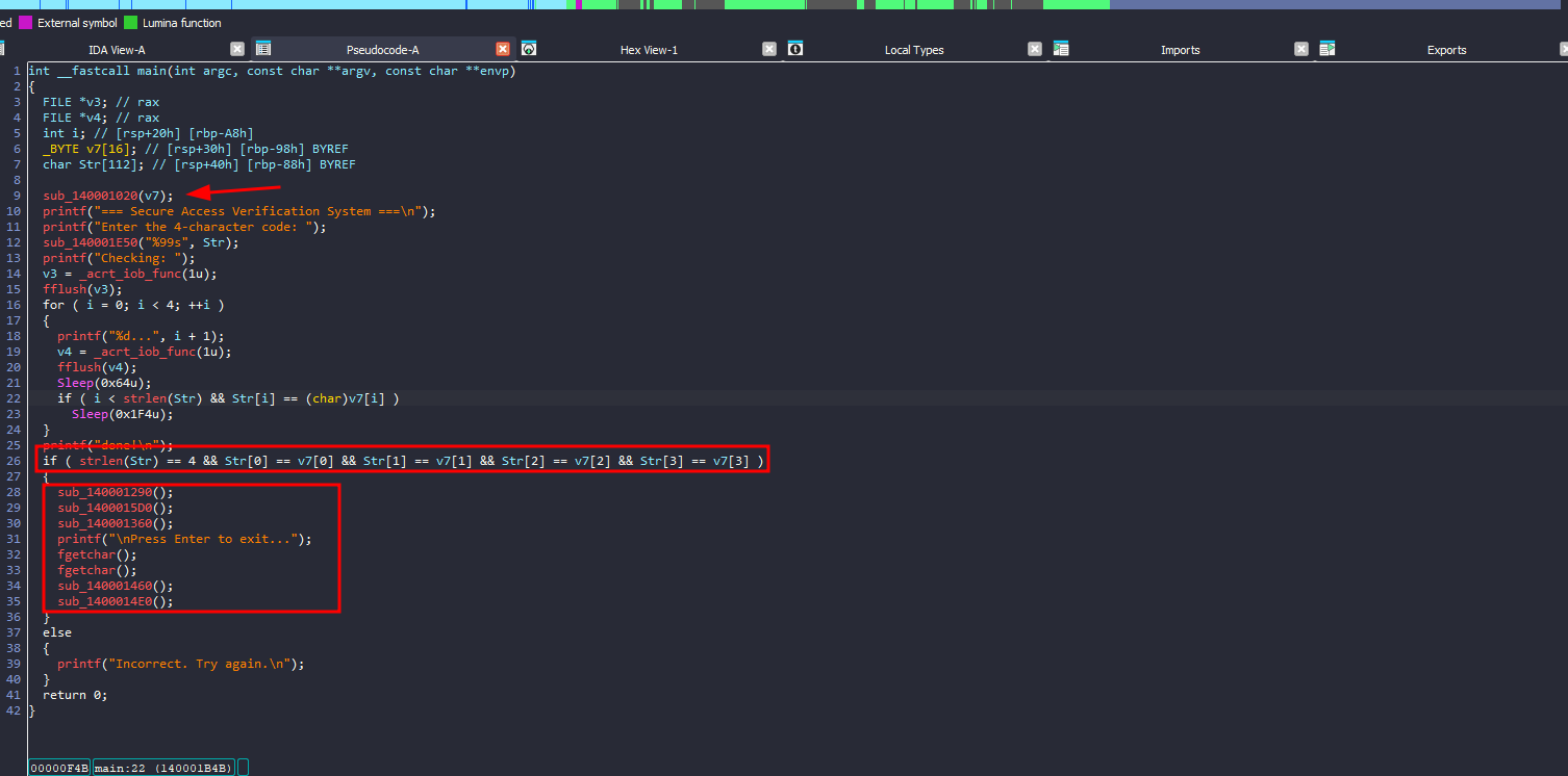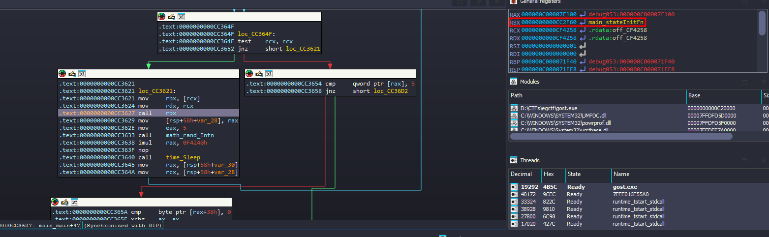 The one named main_stateDecryptPart1Fn grabbed my interset, so I stepped into and noticed that it generates secret characters