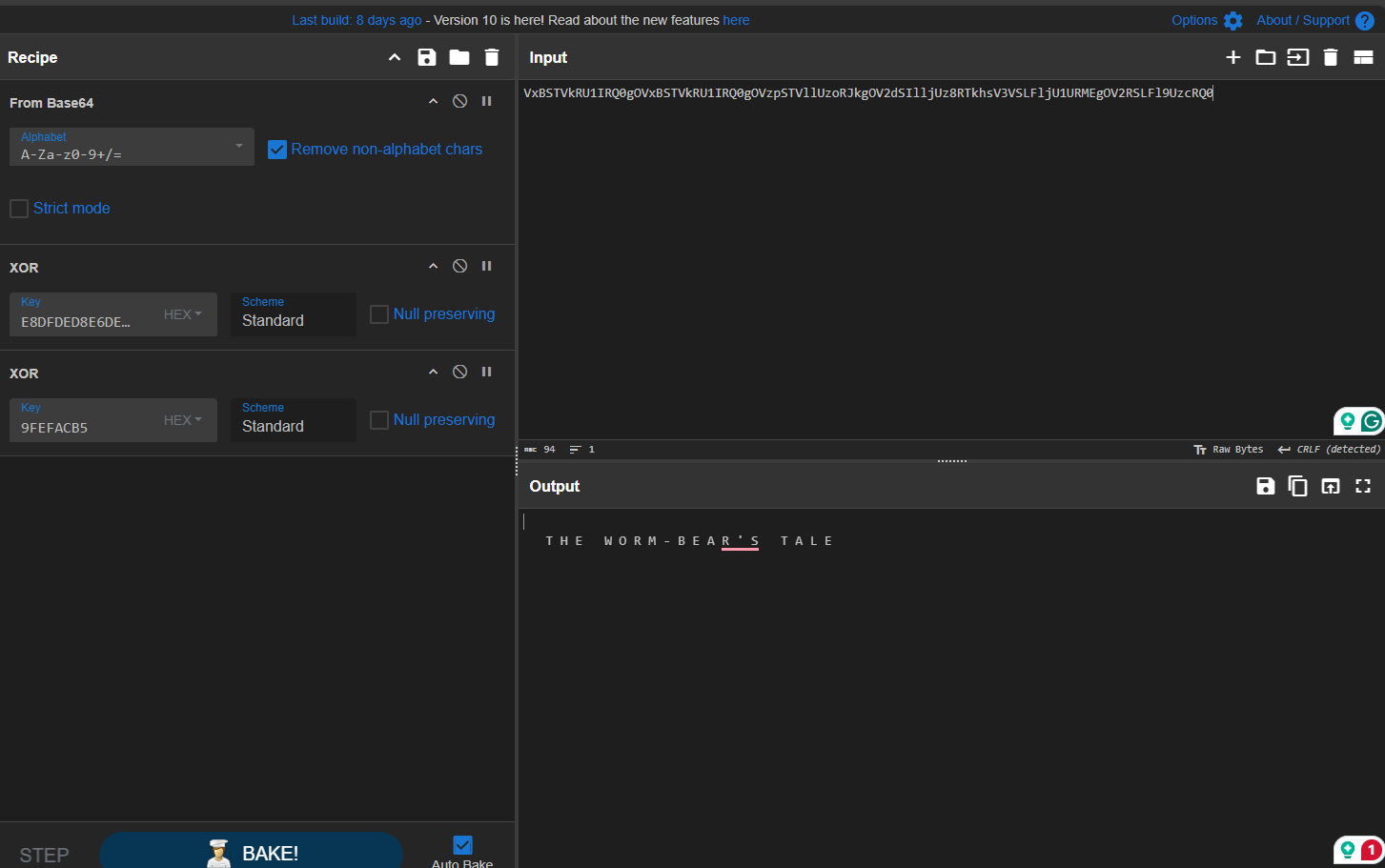 First thing I tried is to try and get the XOR keys used to decrypt the welcome message.