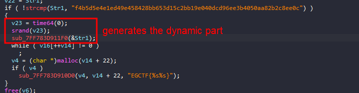 But for main_stateDecryptPart2Fn, there was an additional function that is responsible for generating the dynamic part of the flag
