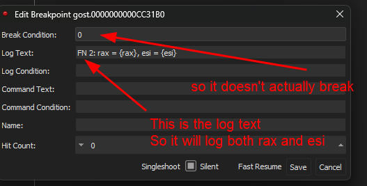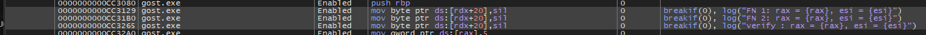 With a simple trick to log rax values on specific instructions without actually breaking, here is my settings