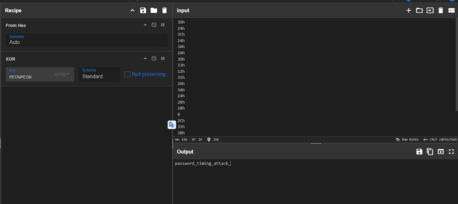 The challenge description hinted that there might be XOR involved, so I just took those hex values, and XORed them with MEOWMEOW as key