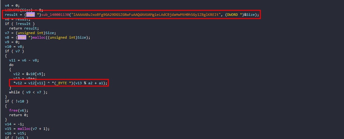 The function starts with a b64 string, decodes it, and then XOR it with my input