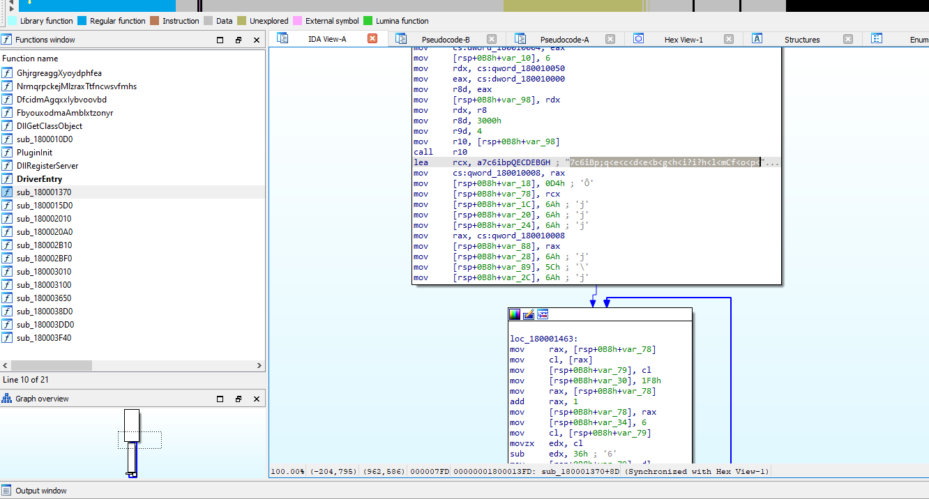 Viewing XREFS to find a proper instruction to start calling the decryption function, I used this because it has the most functionality of the driver.