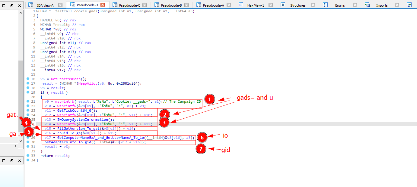 I noticed that each field of this cookie is actually gained from different function calls used to get info about our machine.