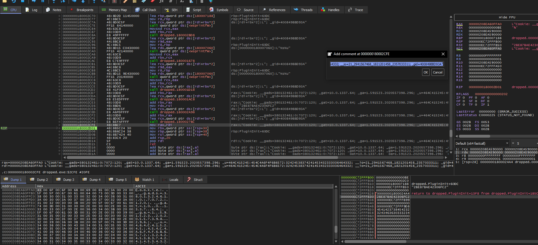 aws.amazon.com. - It then gathers machine-specific information, forming a complex cookie value used in communications with the C2 server.