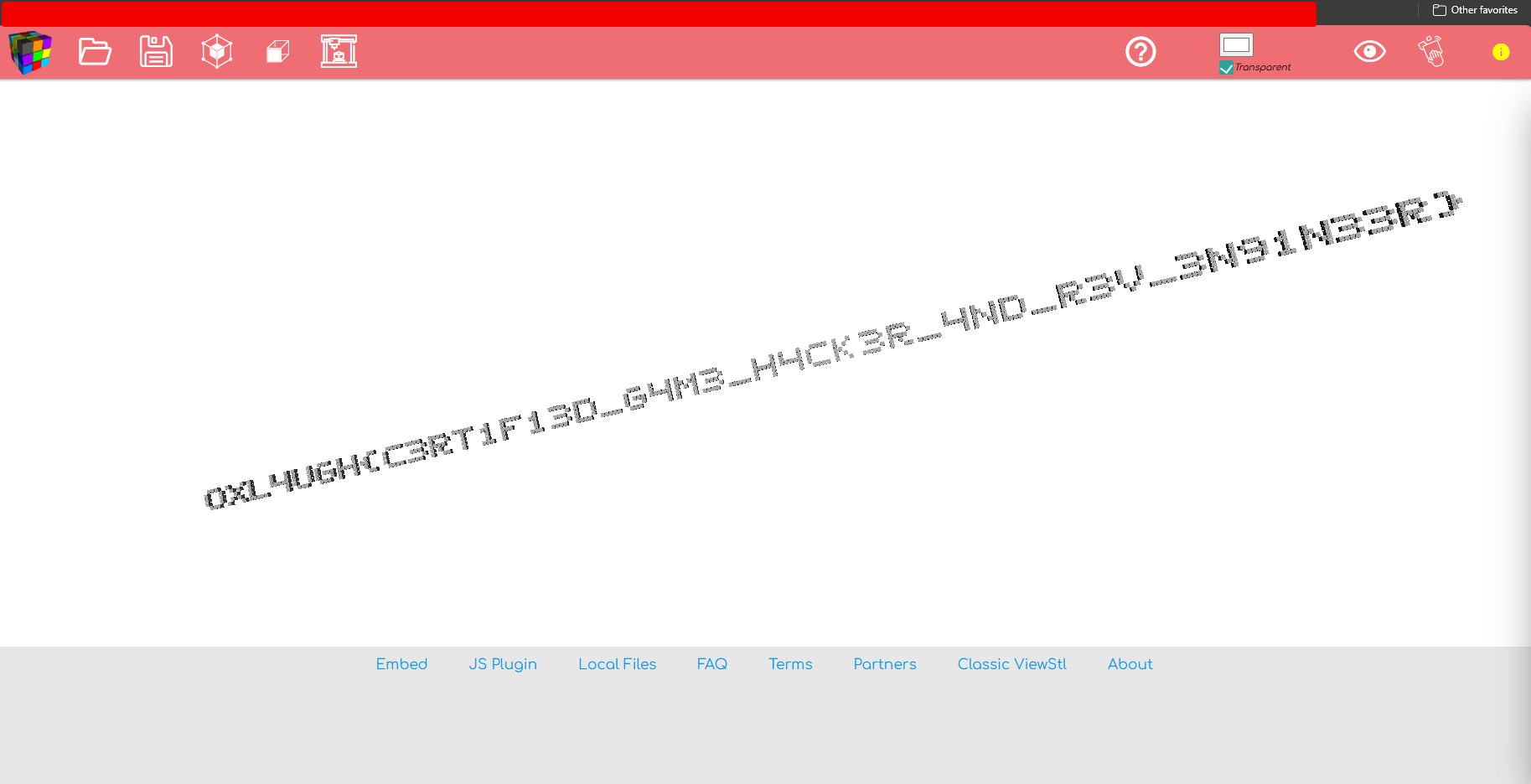 From here, we can locate the secret mesh file (Secret), extract it, and decrypt it. Opening the extracted model in any 3D viewer reveals the flag mesh directly.