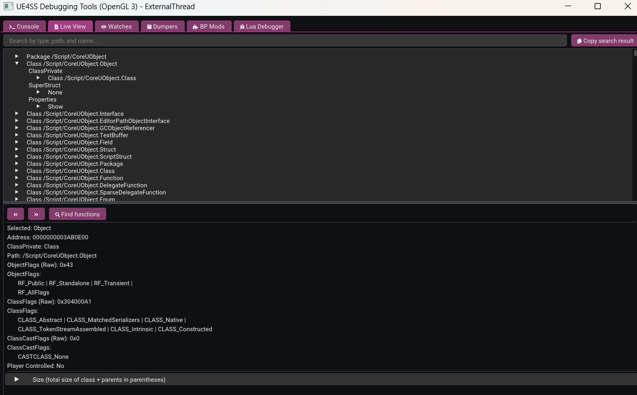 I prefer using UE4SS or UEDUmper because they have an amazing Live View feature resulting in an experience similar to “Inspect Element” in web browsers or a real debugger. It lets us explore the game object hierarchy and modify variables while the game is running in forms of class based structures.